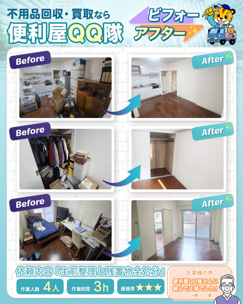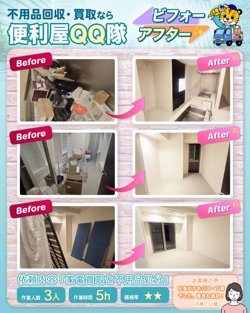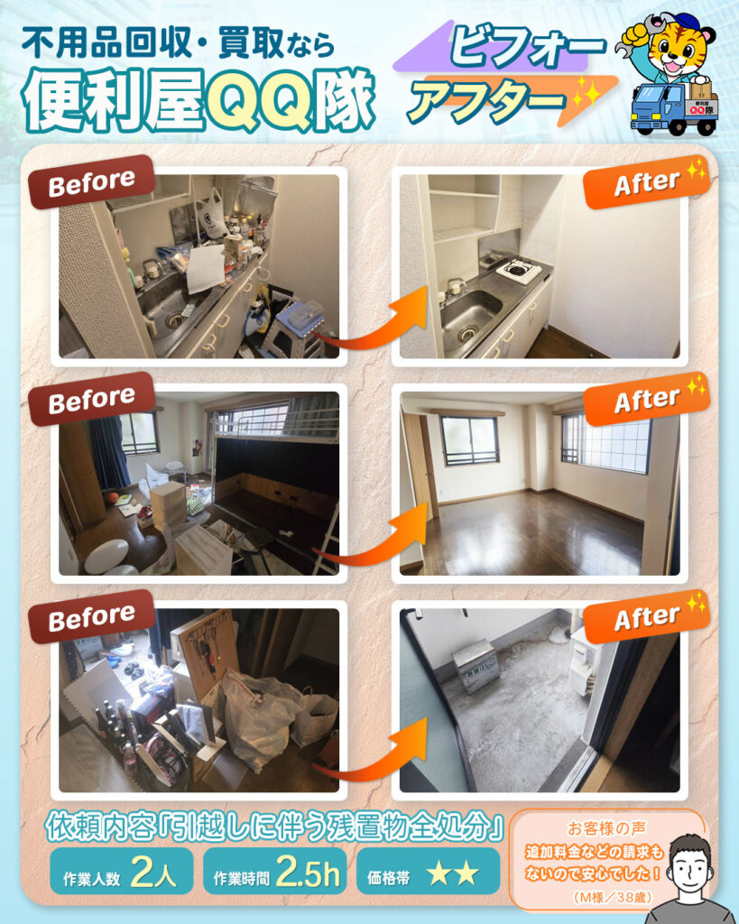 「今日中に退去しないといけない…」そんなお急ぎの方も、便利屋QQ隊なら即日対応可能!